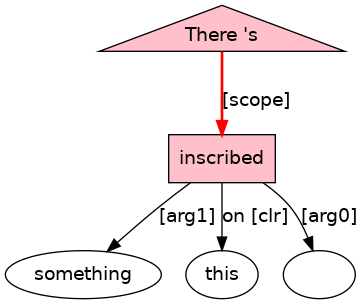 There[EX] <apos>s[BEP;_ex_cat_VePASS_] something[D;_nphd_] inscribed[VVN;_Tn.pr_] on[P-ROLE] this[D;_nphd_] .[PUNC]