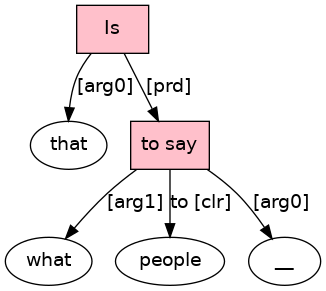 Is[BEP;_equ_Vw_] that[D;_nphd_] what[WPRO] to[TO] say[VB;_Tn.pr_] to[P-ROLE] people[N] ?[PUNC]