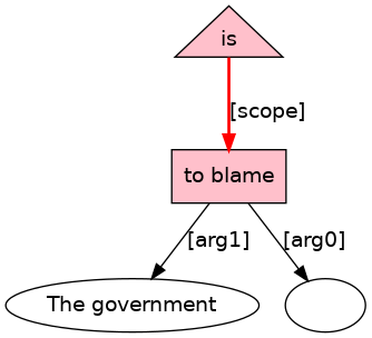 The[D] government[N] is[BEP;_cat_VtPASS_] to[TO] blame[VB;_Tn_] .[PUNC]