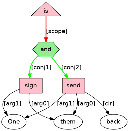One[D;_nphd_] is[BEP;_cat_VtPASS_] for[P-CONN] them[PRO] to[TO] sign[VB;_Tn_] and[CONJ] send[VB;_Tn.p_] back[RP] .[PUNC]