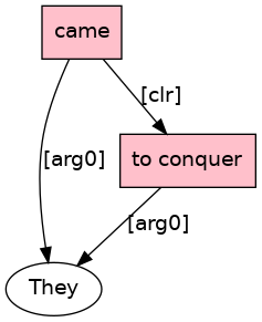They[PRO] came[VBD;_It_] to[TO] conquer[VB;_I_] .[PUNC]