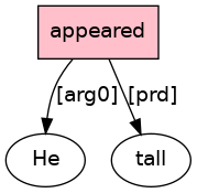 He[PRO] appeared[VBD;_La_] tall[ADJ] .[PUNC]