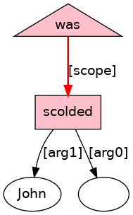 John[NPR] was[BED;_cat_VePASS_] scolded[VVN;_Tn_] .[PUNC]