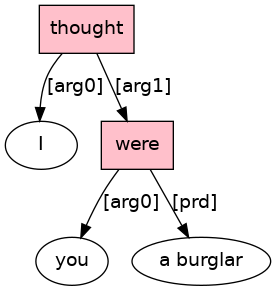 I[PRO] thought[VBD;_Tf_] you[PRO] were[BED;_Ln_] a[D] burglar[N] ![PUNC]