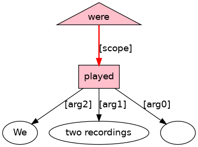 We[PRO] stayed[VBD;_In/pr_] a[D] fortnight[N] .[PUNC]
