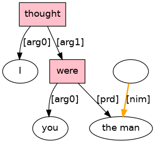 the[D] man[N] I[PRO] thought[VBD;_Tf_] you[PRO] were[BED;_Ln_]